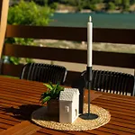 Gli ospiti possono usufruire di una zona pranzo con servizi per la preparazione di tè/caffè. In cucina sono disponibili anche un bollitore elettrico, un frigo e utensili da cucina. L'aeroporto di Spalato dista 50 km da quest'alloggio sul lungomare con 2 camere da letto.